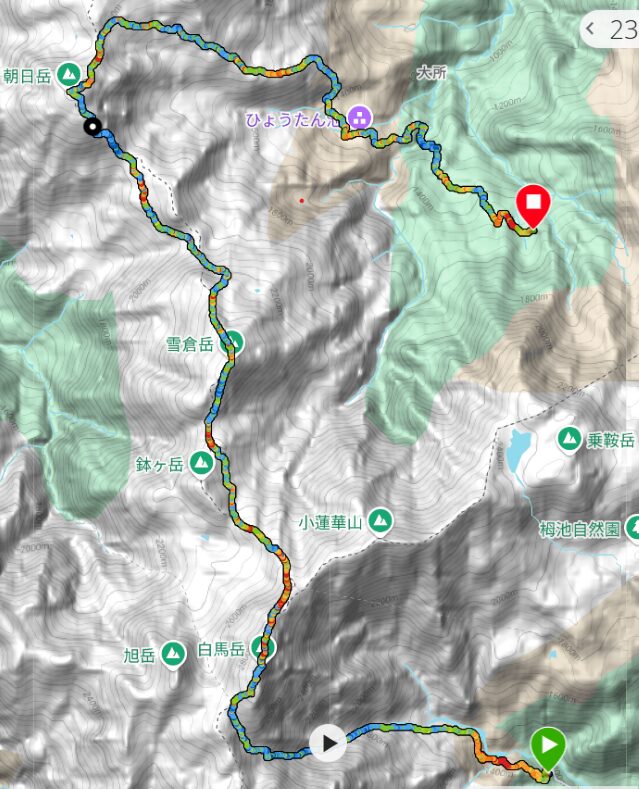 もの凄く暑い夏が続いて、長い距離を走れない。レースが終わって1月経ってしまったここらへんで、少し活を入れる必要がある。そこで前からトレランで訪れたかった白馬岳大雪渓から北方の名山を訪れる旅に出かけることにする。遠くから何度も眺めていた雪倉岳と朝日岳は名山でありながら今回が初訪問。雪渓とお花畑と青空の原色の旅